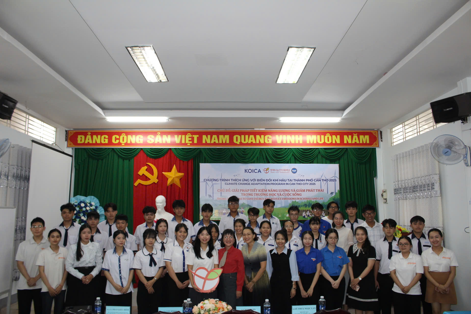 Ngày 9/10/2025, Tổ chức Merry Year International (MYI) – Hàn Quốc phối hợp với Liên hiệp các tổ chức hữu nghị thành phố Cần Thơ khai mạc chương trình tập huấn “Thích ứng với biến đổi khí hậu năm 2025” với chủ đề “Giải pháp tiết kiệm năng lượng và giảm phát thải trong trường học và cuộc sống.” Tham dự chương trình có bà Lê Thụy Ngọc Lan – Phó Chủ tịch Liên hiệp các tổ chức hữu nghị thành phố Cần Thơ, bà Jo Mihyeon - Giám đốc Quốc gia MYI Việt Nam cùng học sinh của 10 trường THPT trên địa bàn thành phố Cần Thơ.